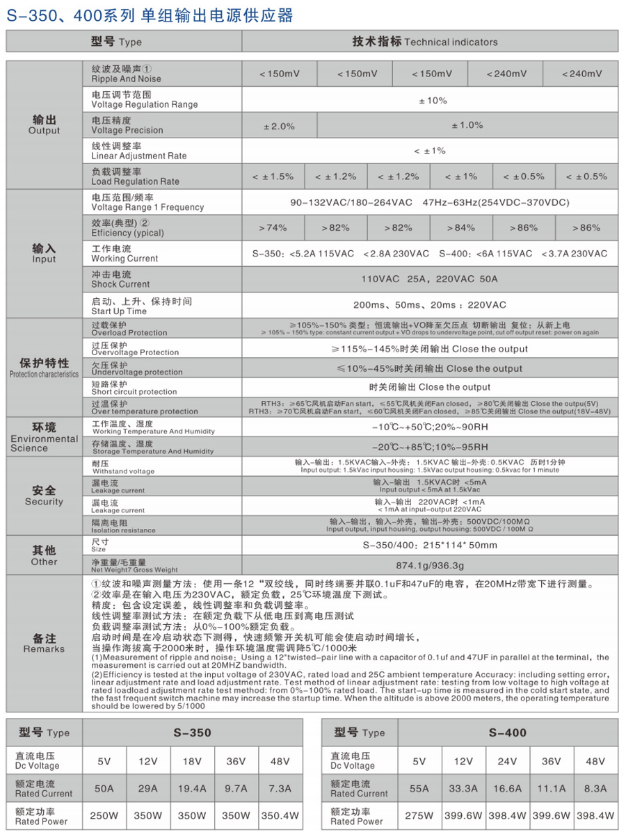 S-350、400系列是一款350、400單組輸出封閉型電源供應器,采用85-264VAC全范圍交流輸入,整系列提供5V,12V,15V,24V,36V和48V輸出…