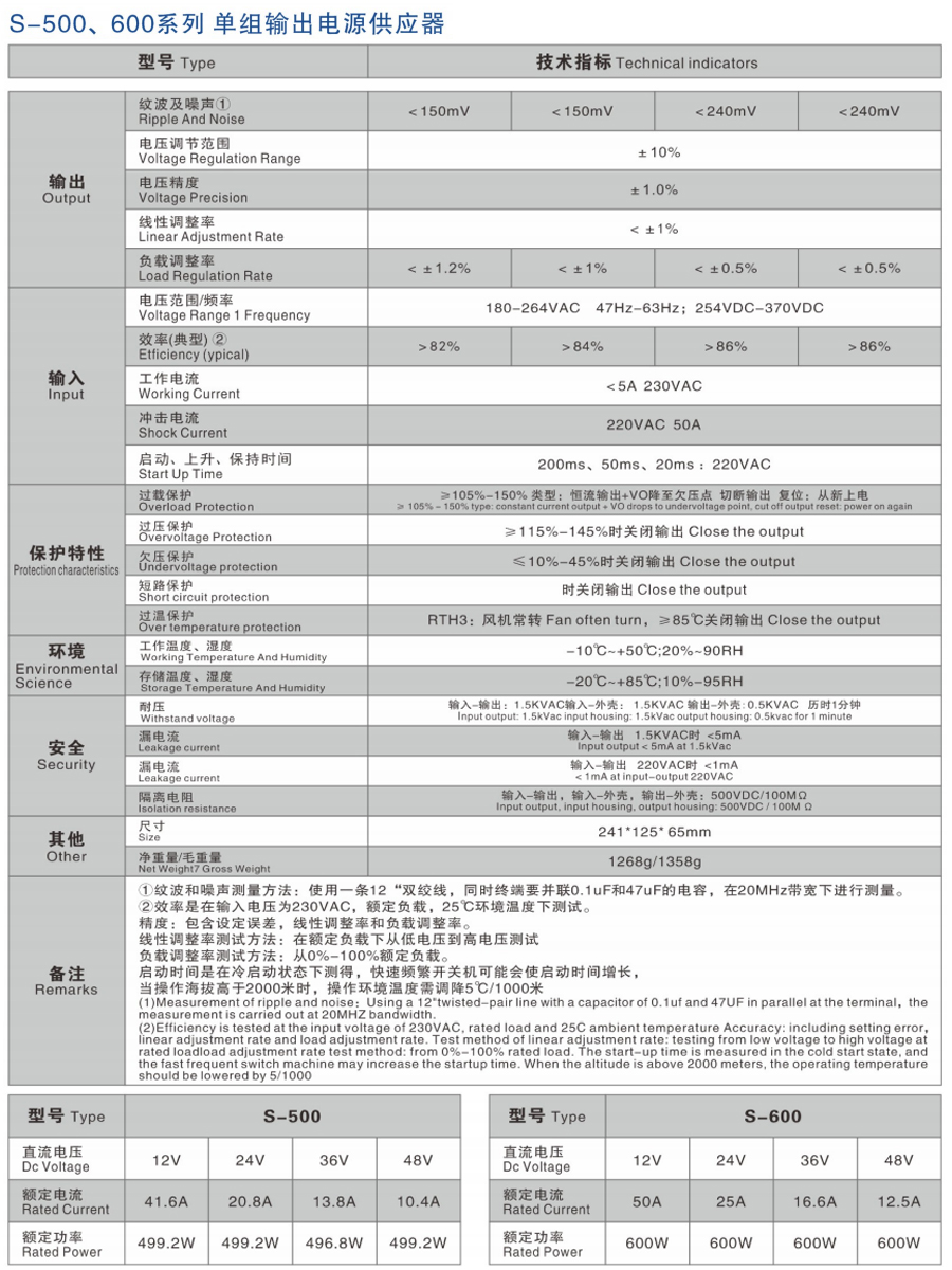 S-500、600系列是一款500、600單組輸出封閉型電源供應器,采用85-264VAC全范圍交流輸入,整系列提供5V,12V,15V,24V,36V和48V輸出…