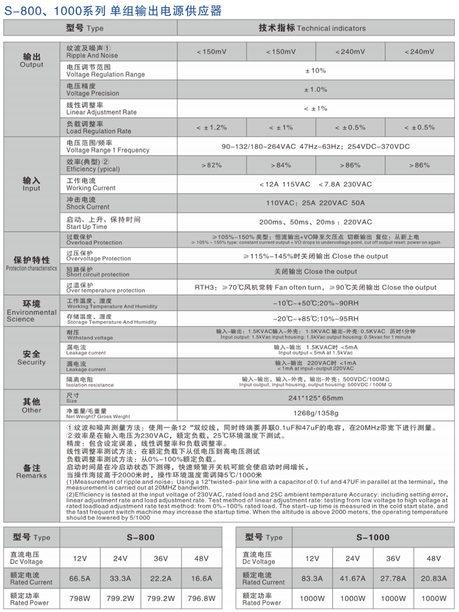 S-800、1000系列是一款800、1000單組輸出封閉型電源供應器,采用85-264VAC全范圍交流輸入,整系列提供5V,12V,15V,24V,36V和48V…
